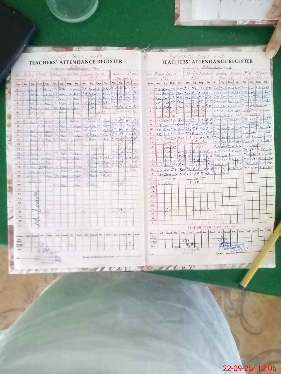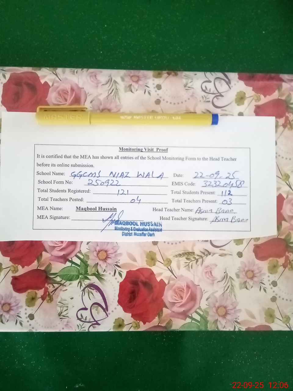 | Attendance Register | Head Teacher | MEA with School | Visit Proof |