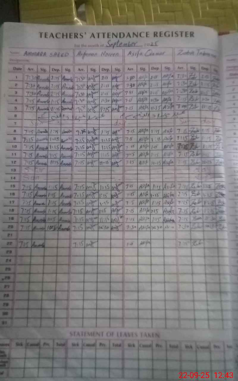 | Name: AM**** SA**** Designation: (School Headmaster's/Headmistress's) SSE (Physics) Phone/Cell Number: 03**** |