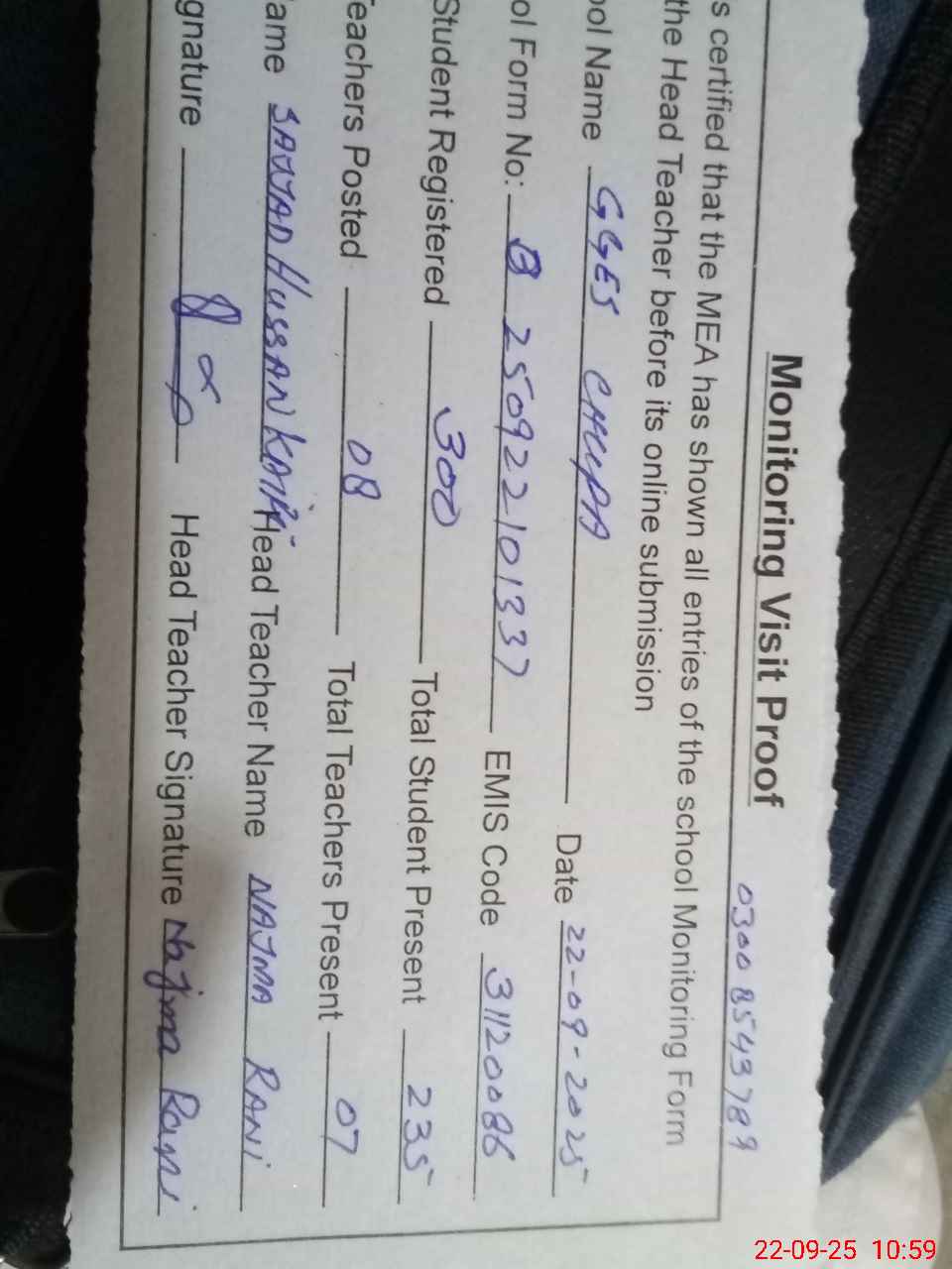 | EMIS Code: 31120086 | Name of School: GGES CHAK CHOOPA | |||