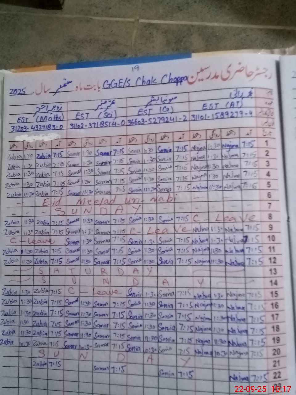 | District: BAHAWALNAGAR | Tehsil: CHISHTIAN | Markaz: CTN -VI-FEMALE | Level: Middle | |