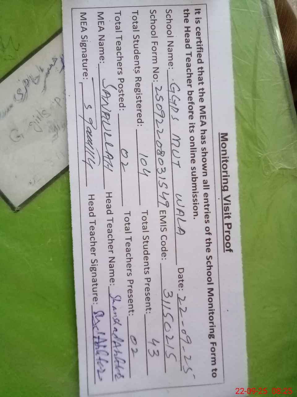 | EMIS Code: 31150215 | Name of School: GGPS MUIT WALA | |||