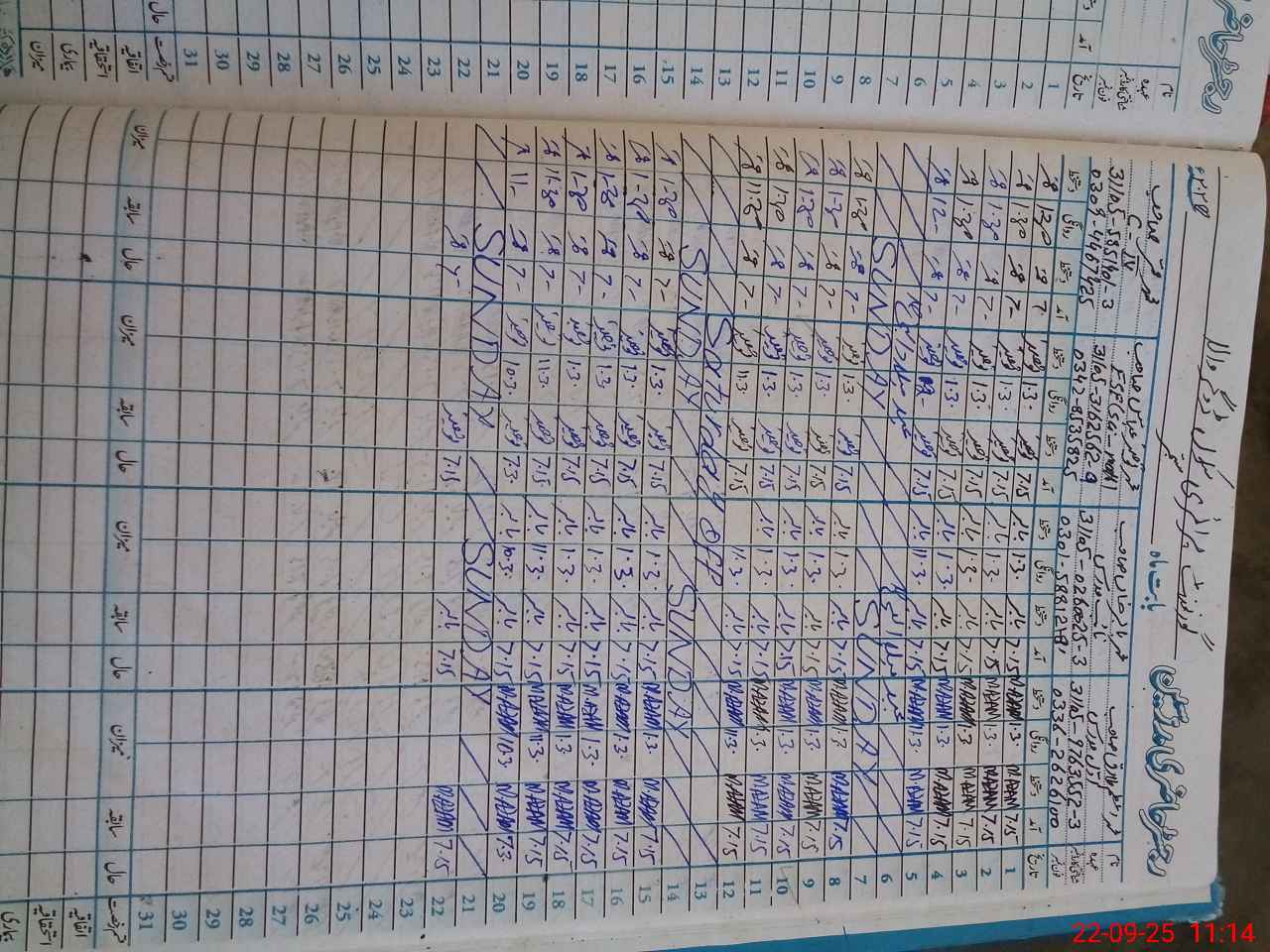 | CNIC | Full Name | Designation | R/C | Absence During Last Calender Month |