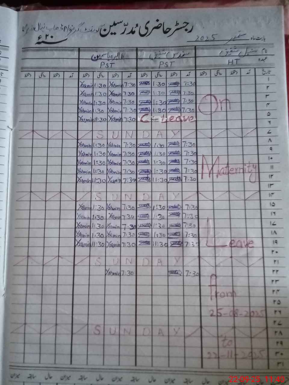 | Leave | Duty | Absent | Maternity | Medical | Ex- Pak |