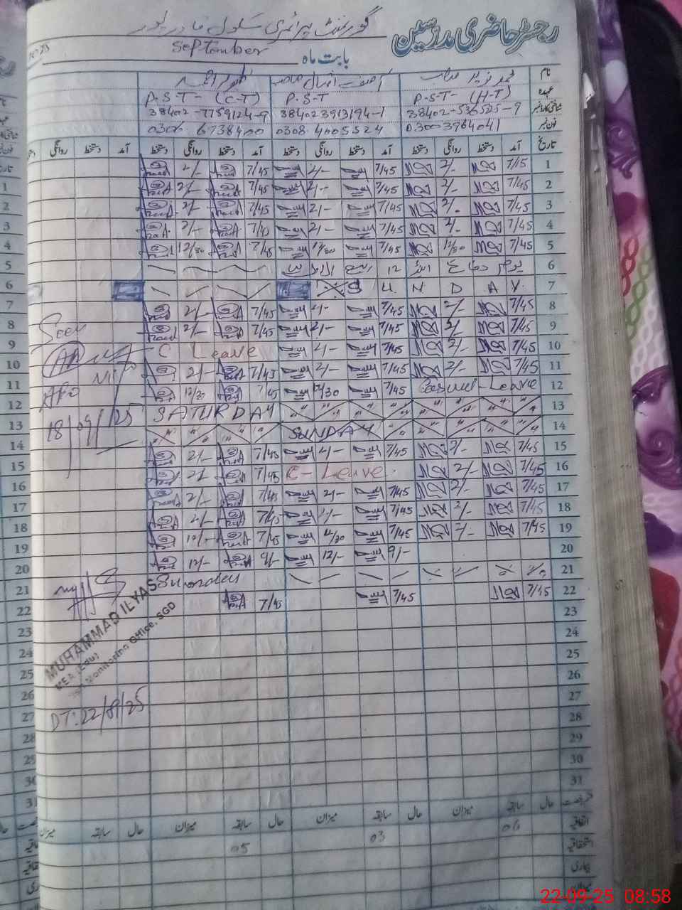 | Name: MU**** NA**** Designation: (School Headmaster's/Headmistress's) PST Phone/Cell Number: 03**** |
