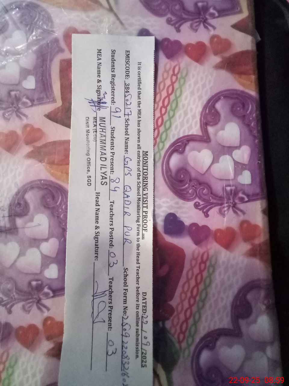| EMIS Code: 38450217 | Name of School: GPS QADAR PUR | |||
