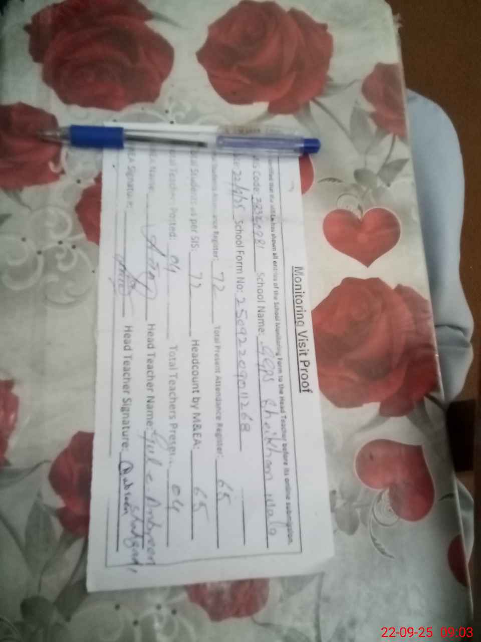 | Attendance Register | Head Teacher | MEA with School | Visit Proof |