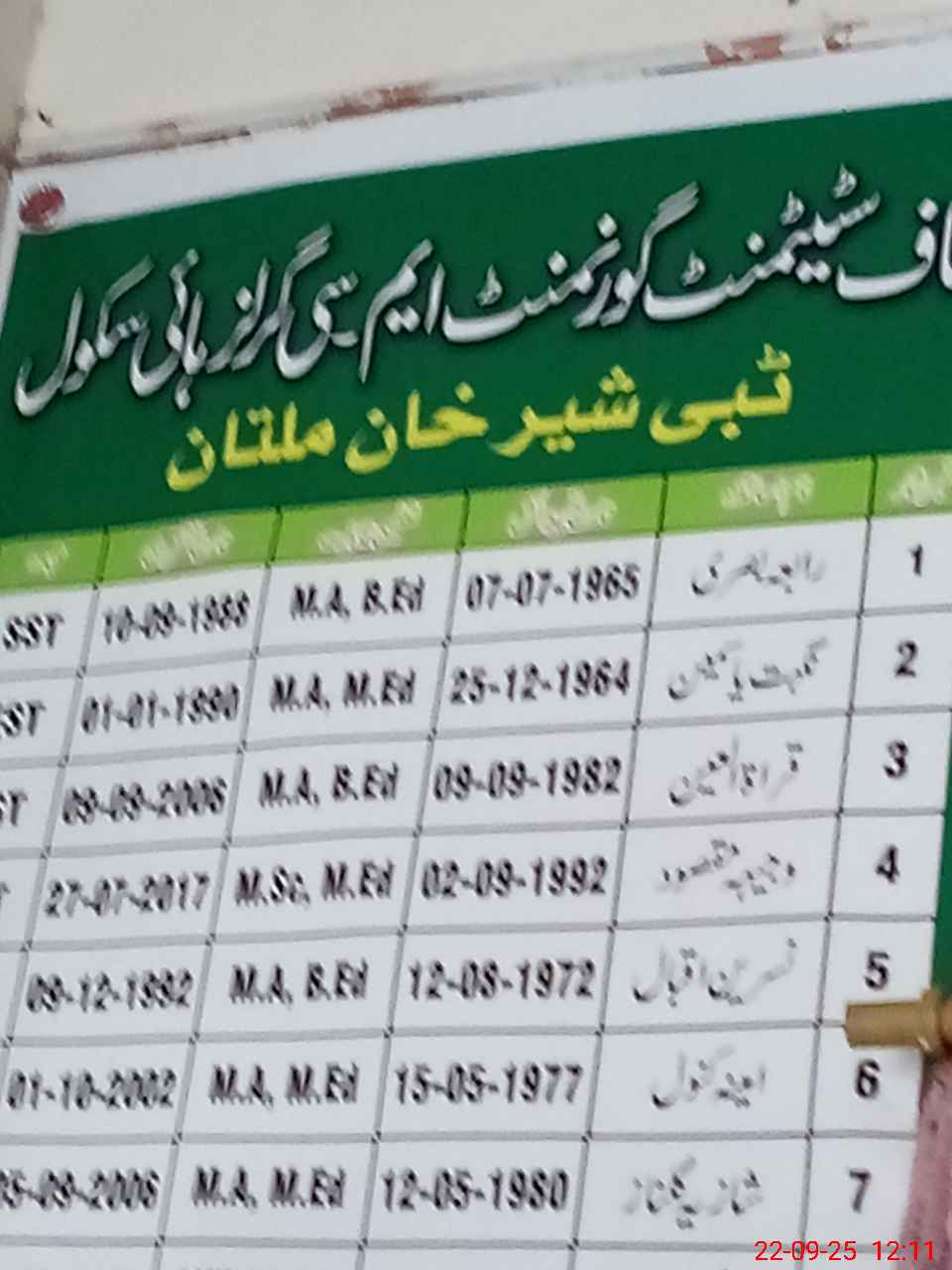 | EMIS Code: 36110099 | Name of School: GGHS MC TIBBI SHAIR KHAN MULTAN | |||