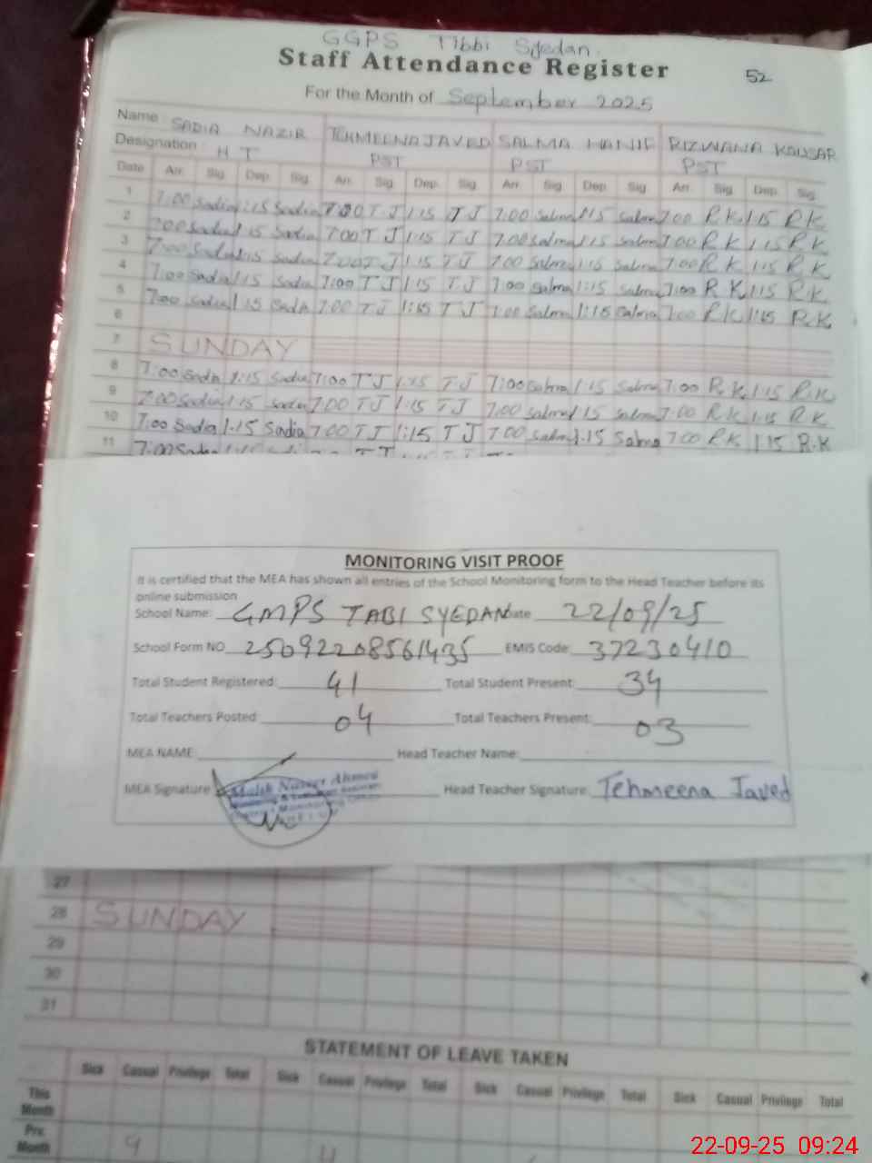 | EMIS Code: 37230410 | Name of School: GMPS TABI SYEDAN | |||