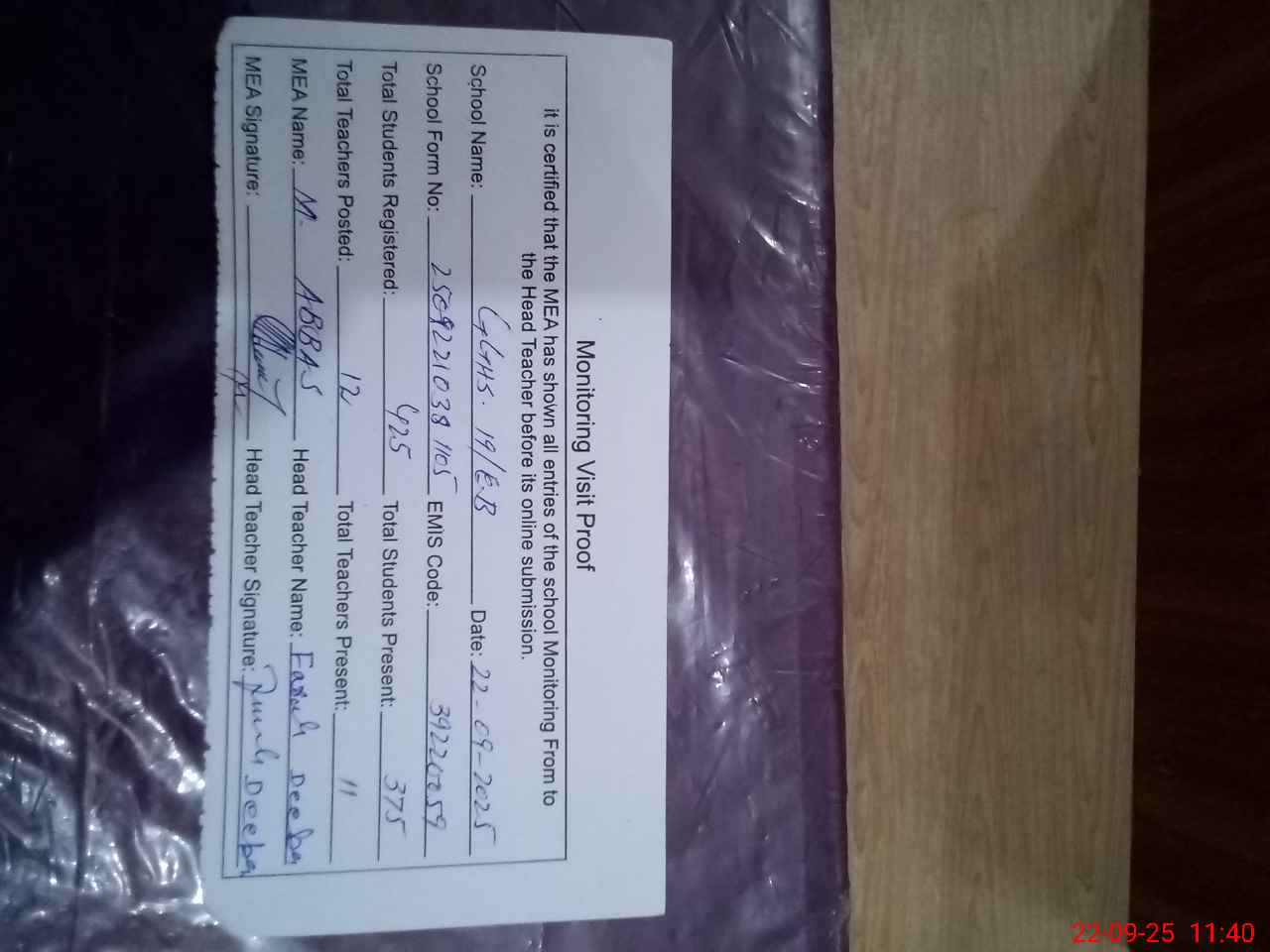 | Certified that this School was Inspected by the Undersigned MEA/DMO Today and the Information Stated Above is as Per Record. | |||||