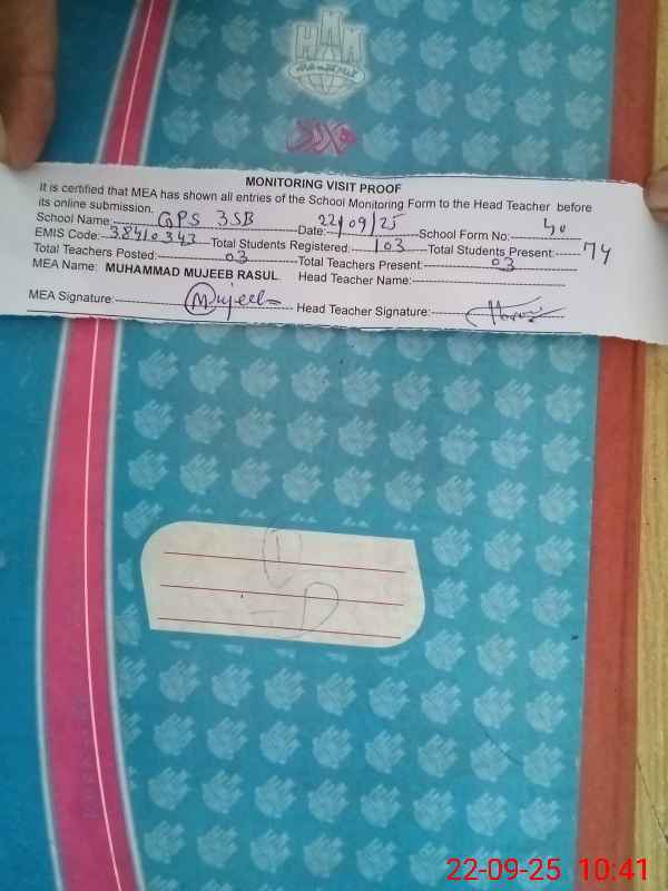 | EMIS Code: 38410343 | Name of School: GPS CHAK NO.3 SB | |||
