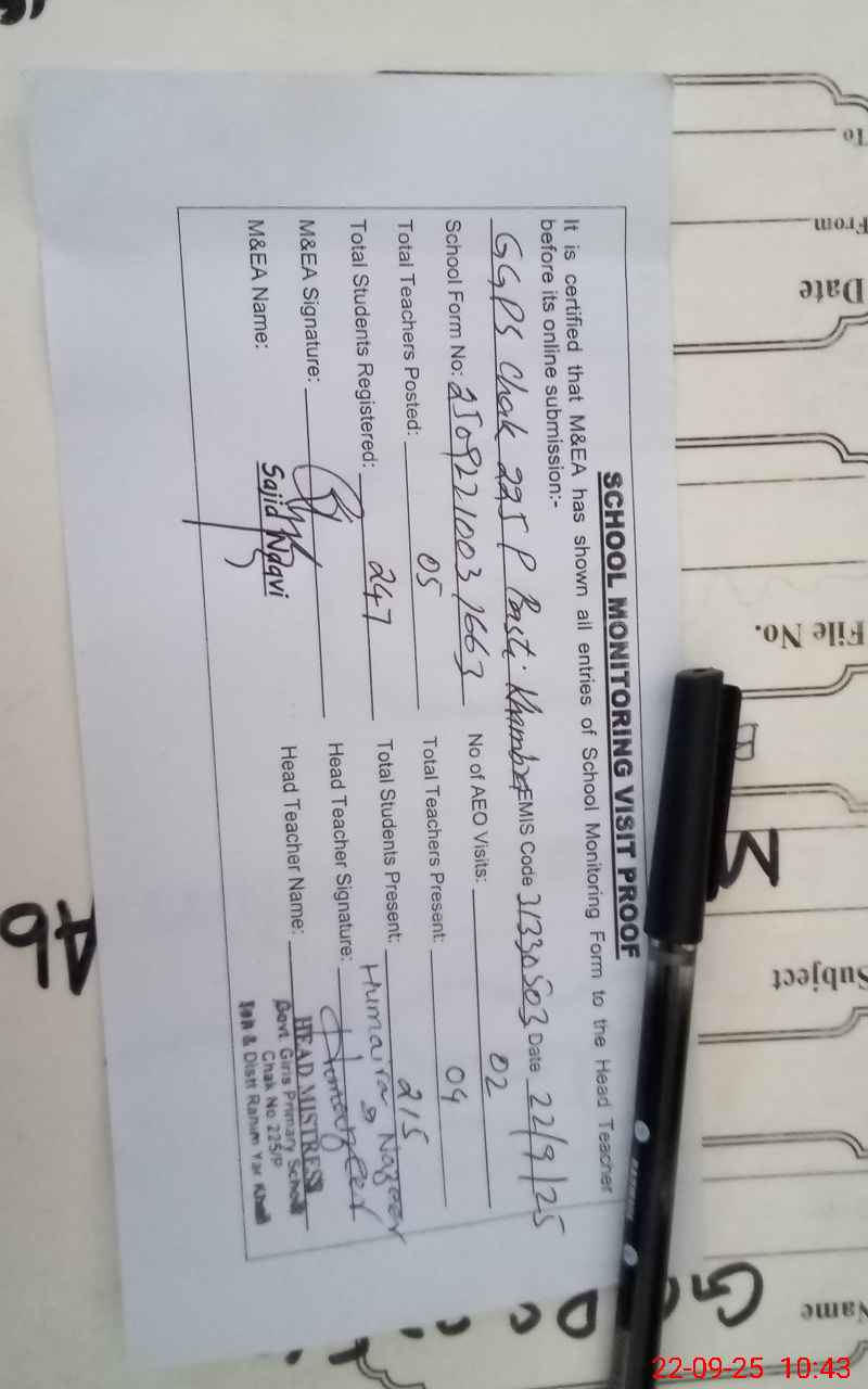 | EMIS Code: 31330503 | Name of School: GGPS CHAK 225/P (Basti Khambra Shahbazpur Road) | |||