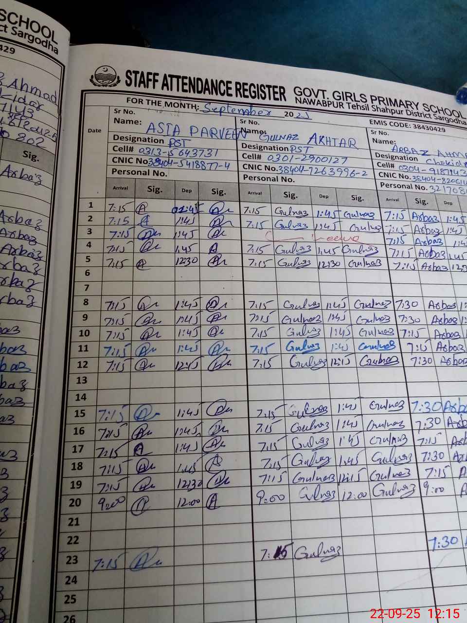 | Name: AS**** PA**** Designation: (School Headmaster's/Headmistress's) PST (Sc-Math) Phone/Cell Number: 03**** |