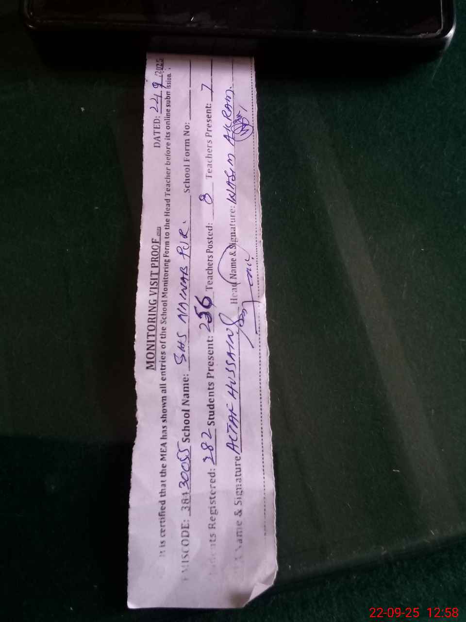 | Certified that this School was Inspected by the Undersigned MEA/DMO Today and the Information Stated Above is as Per Record. | |||||