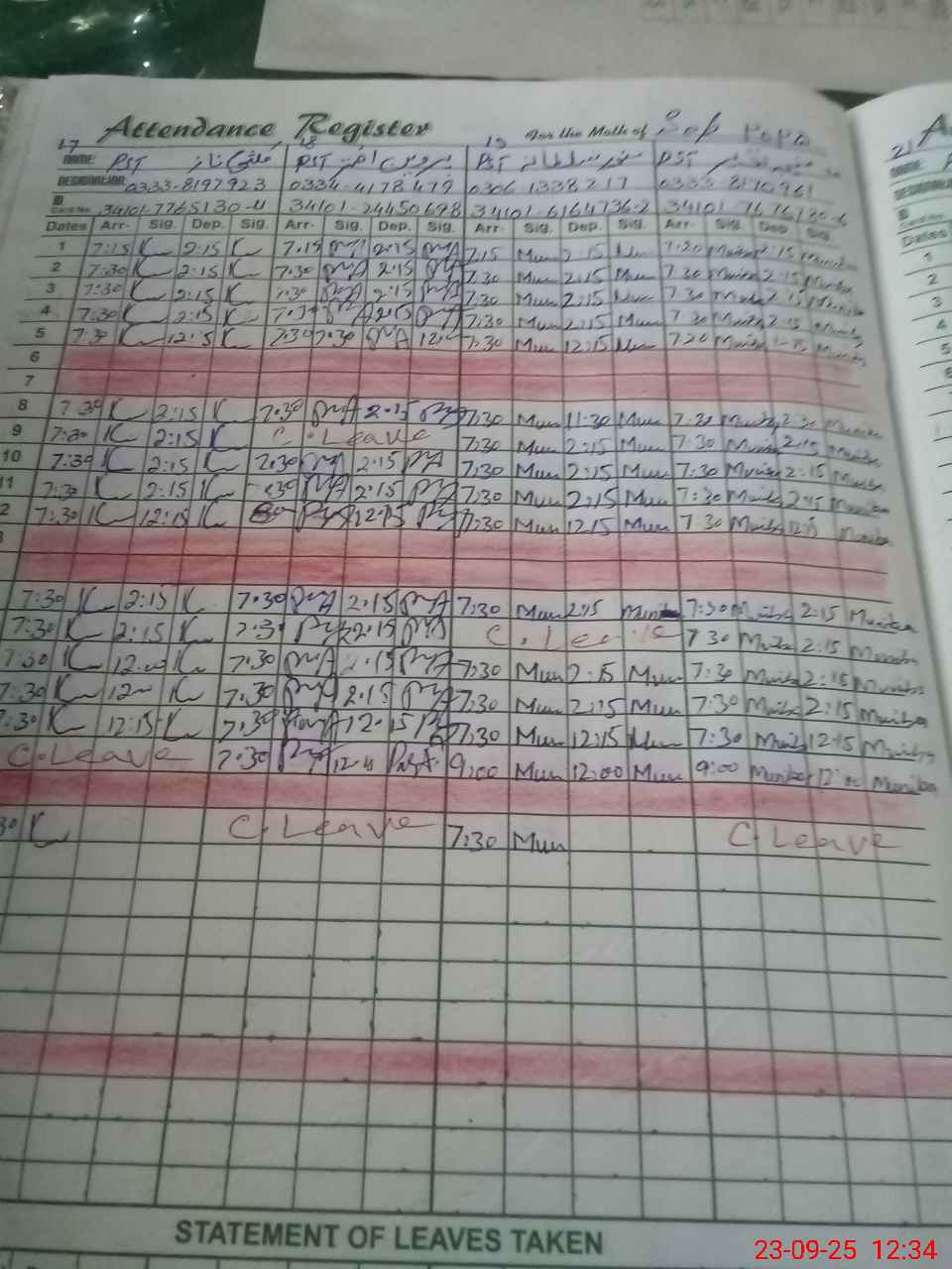 | CNIC | Full Name | Designation | R/C | Absence During Last Calender Month |