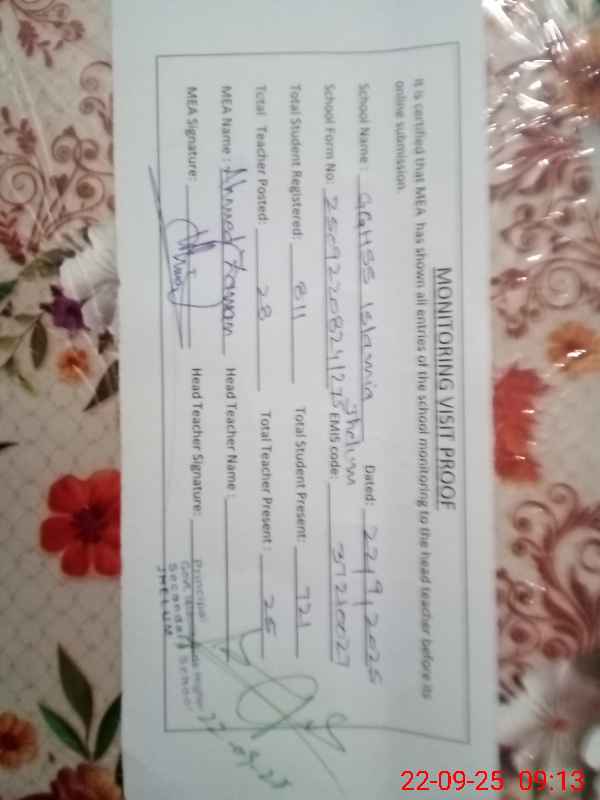 | EMIS Code: 37210027 | Name of School: GGHSS ISLAMIA JEHLUM | |||