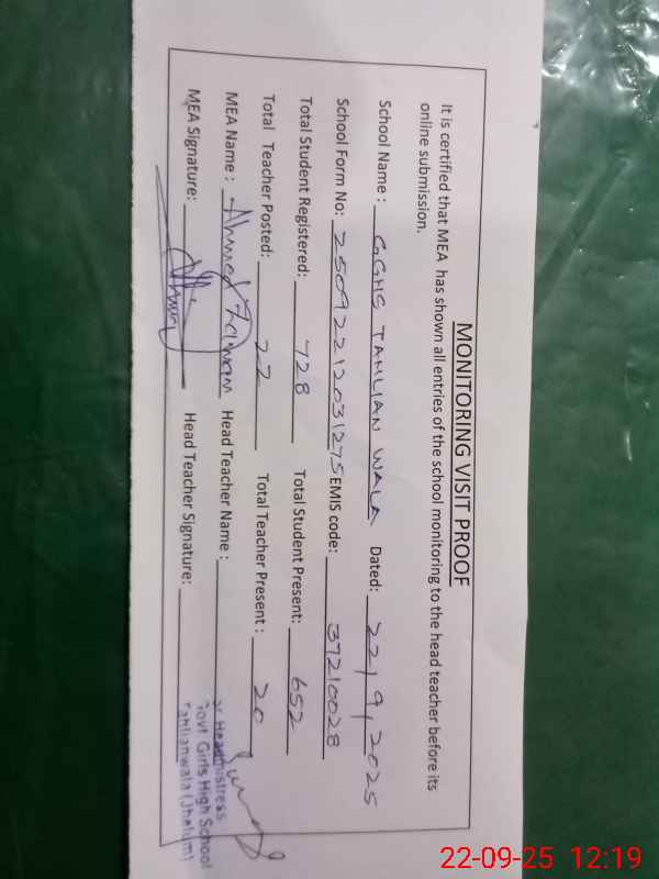 | EMIS Code: 37210028 | Name of School: GGHS TAHLIAN WALA | |||