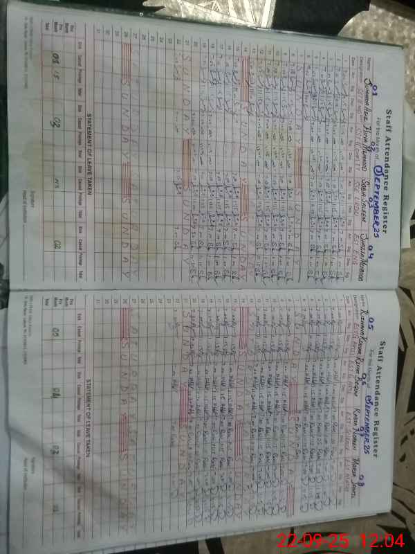 | CNIC | Full Name | Designation | R/C | Absence During Last Calender Month |