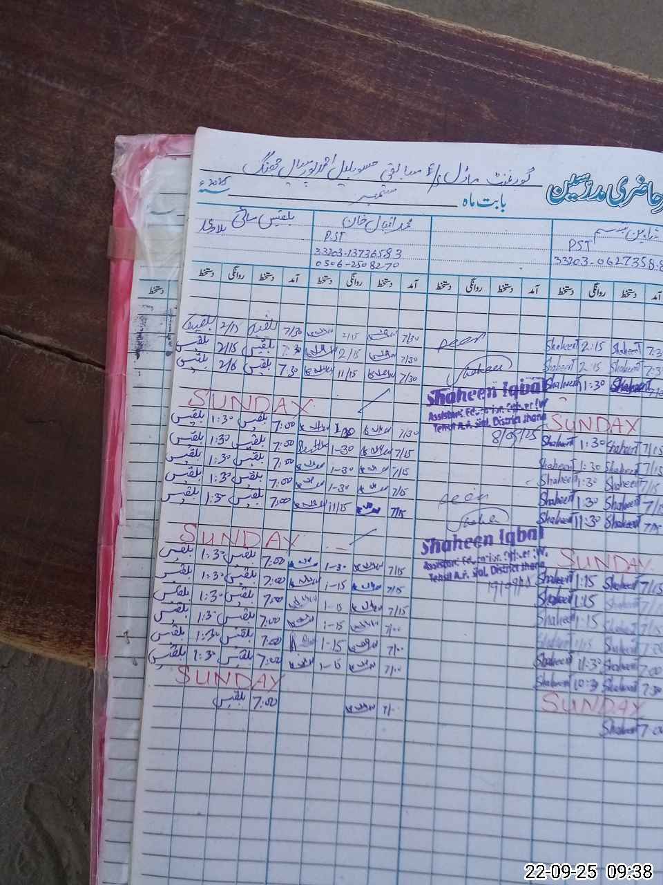 | Name: MIQ**** Designation: (School Headmaster's/Headmistress's) PST Phone/Cell Number: 03**** |