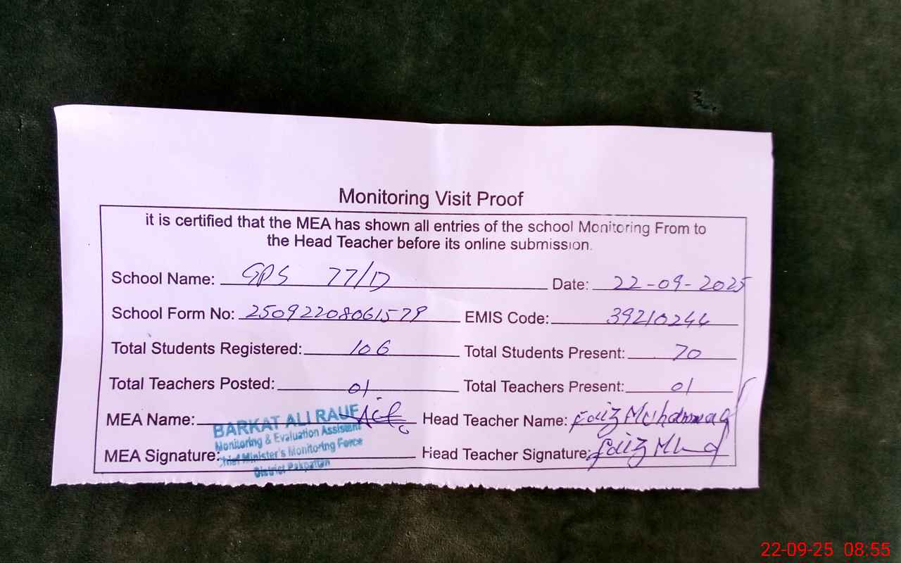 | EMIS Code: 39210244 | Name of School: GPS CHAK NO. 77 /D | |||