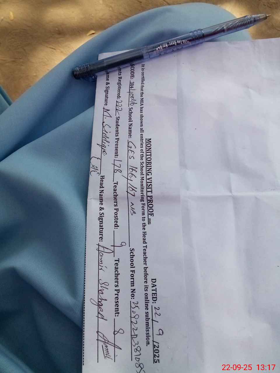 | EMIS Code: 38440046 | Name of School: GES CHAK NO.166/167 NB | |||