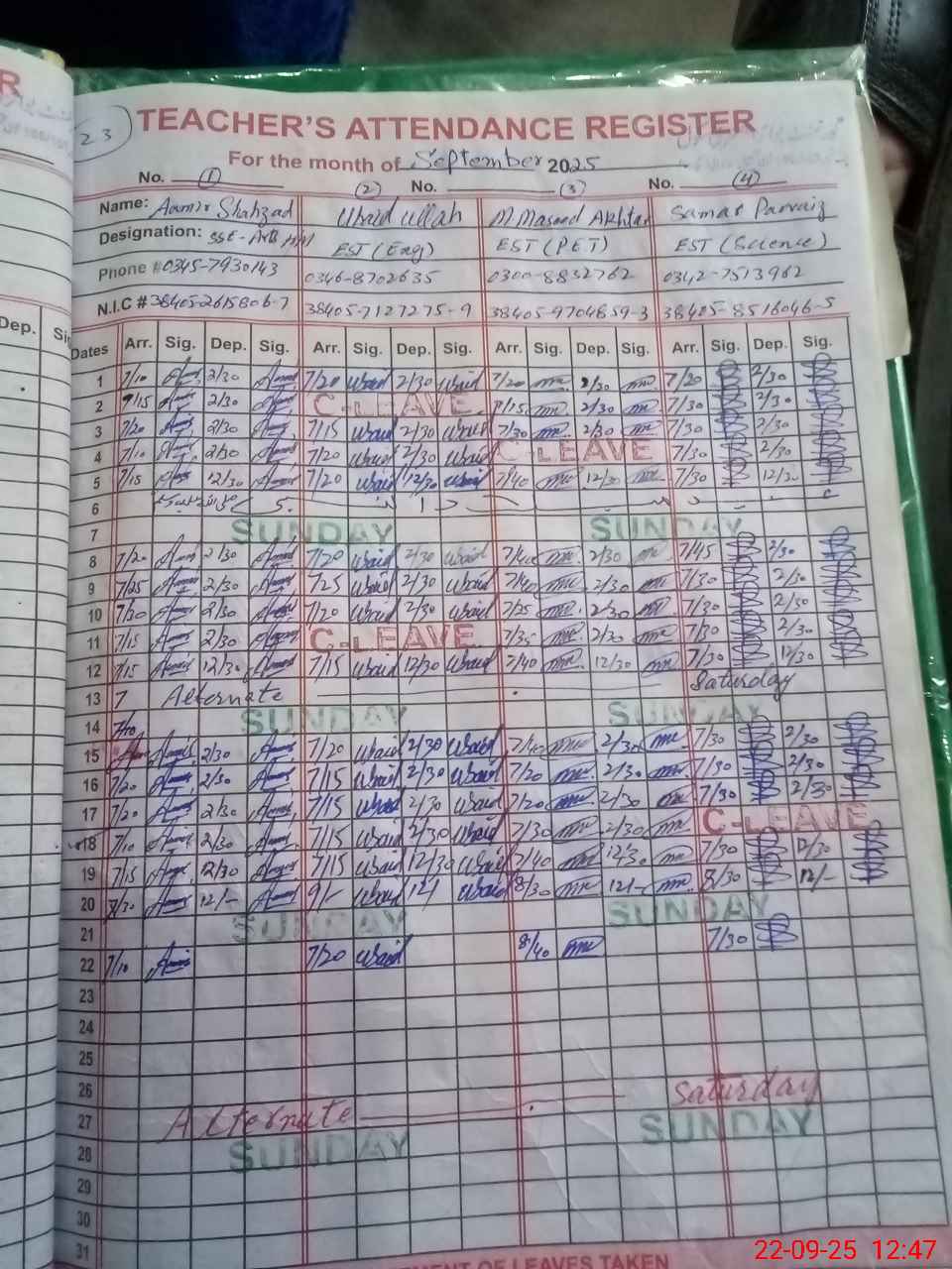| Name: AA**** SH**** Designation: (School Headmaster's/Headmistress's) SSE (ARTS) Phone/Cell Number: 03**** |