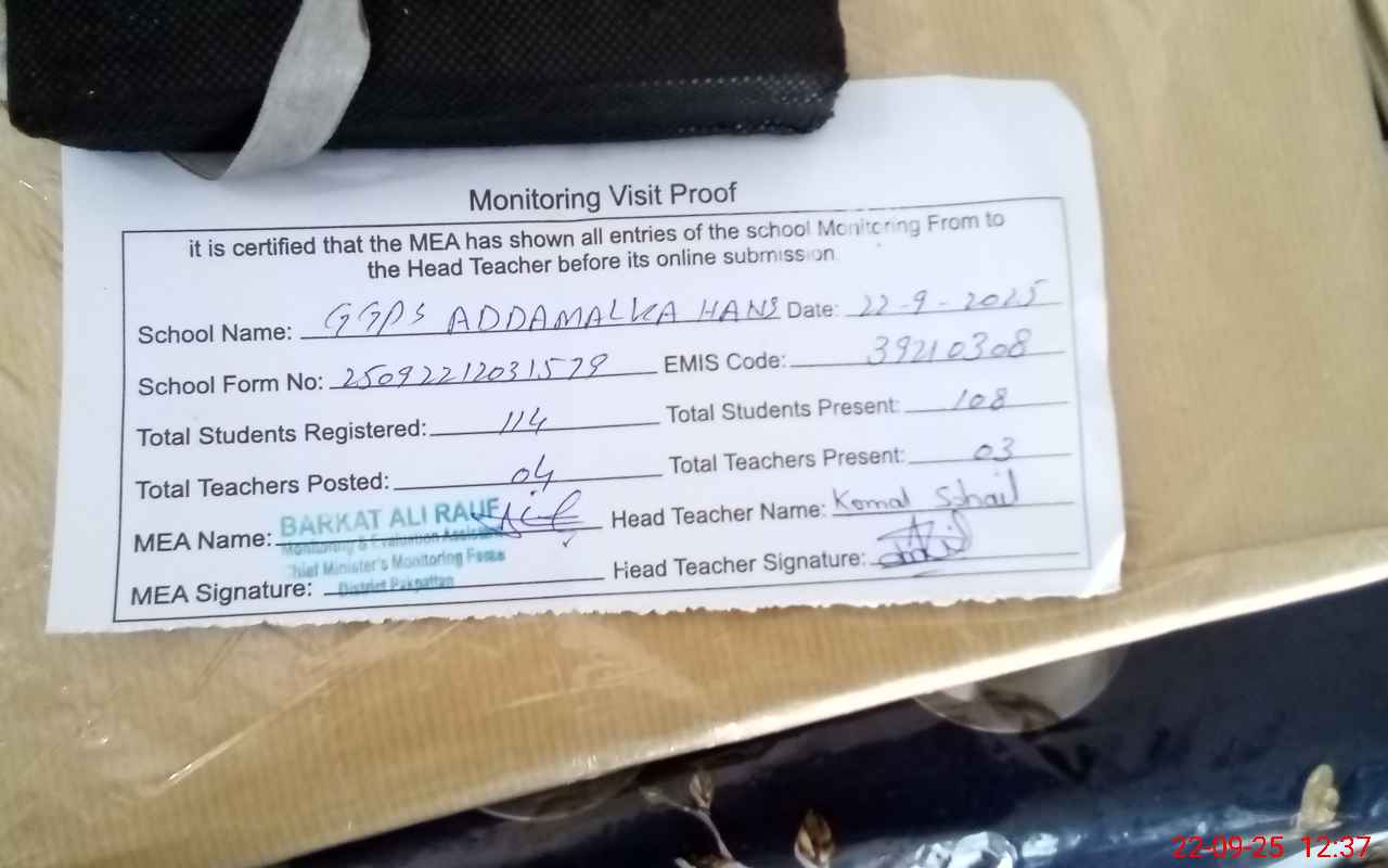 | EMIS Code: 39210308 | Name of School: GGPS ADDA MALKA HANS | |||