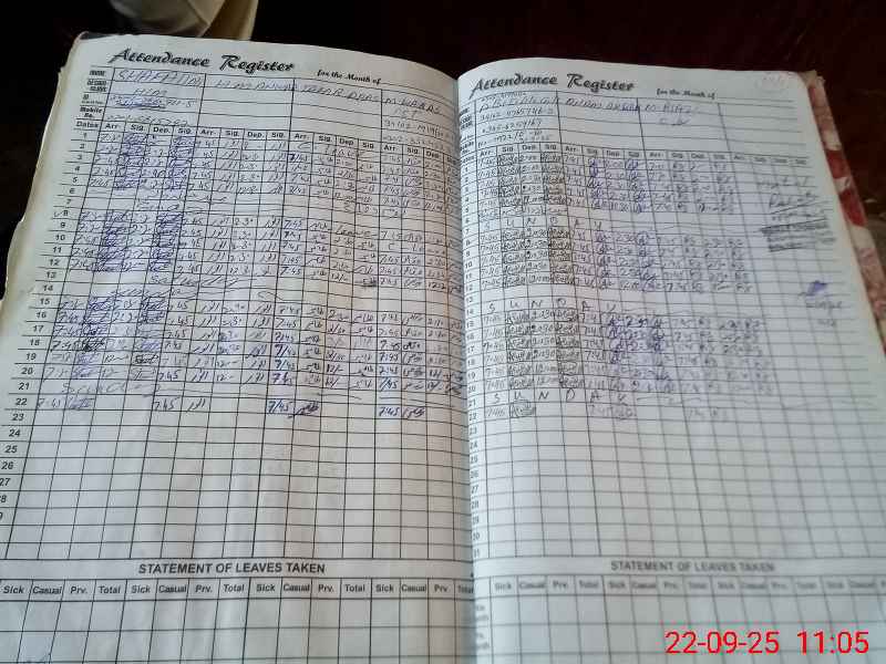 | CNIC | Full Name | Designation | R/C | Absence During Last Calender Month |