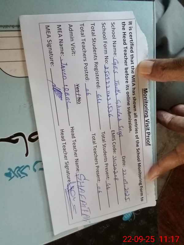 | EMIS Code: 34130208 | Name of School: GES THATTA GULAB SINGH | |||