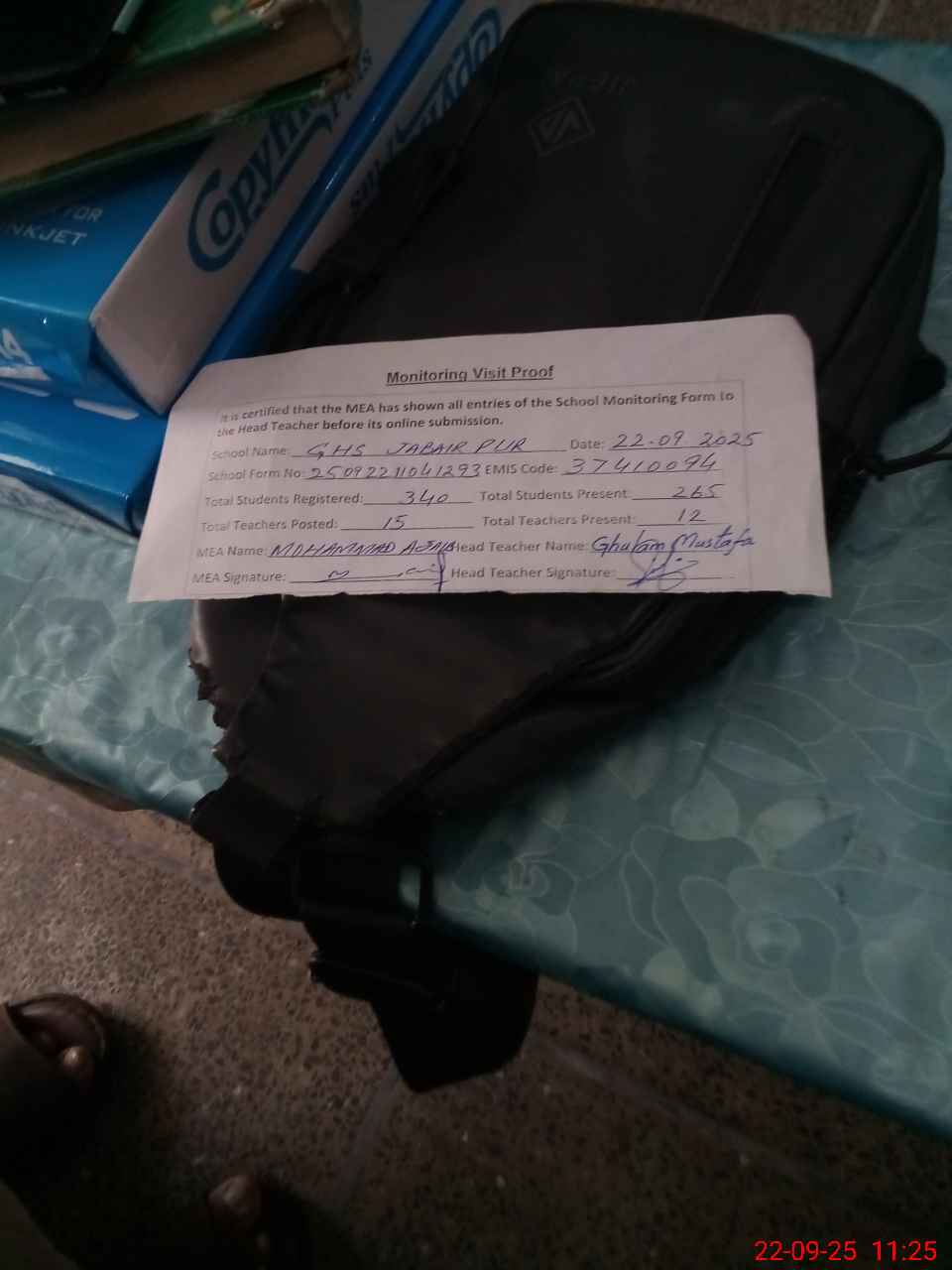 | Attendance Register | Head Teacher | MEA with School | Visit Proof |