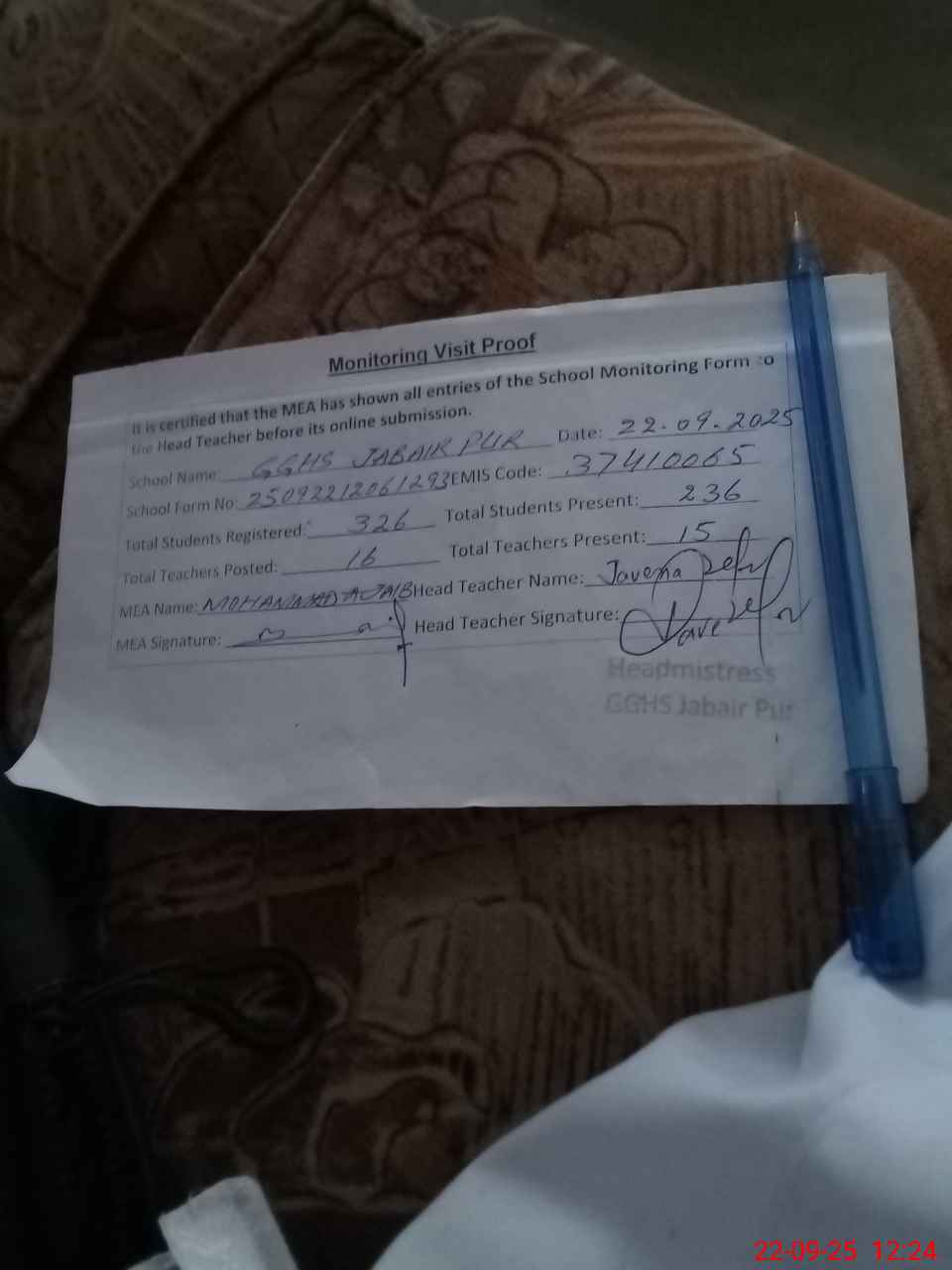 | EMIS Code: 37410065 | Name of School: GGHS JABAIR PUR CHAKWAL | |||