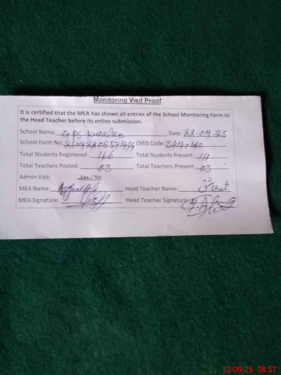 | EMIS Code: 34140160 | Name of School: GPS KURAL KAY | |||