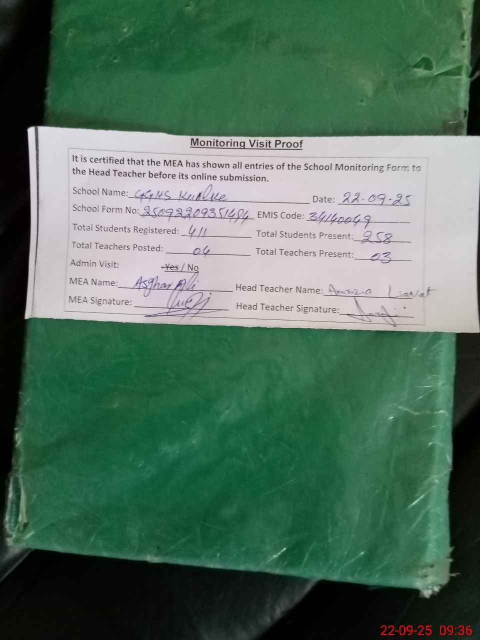 | EMIS Code: 34140049 | Name of School: GGHS KURLKE | |||