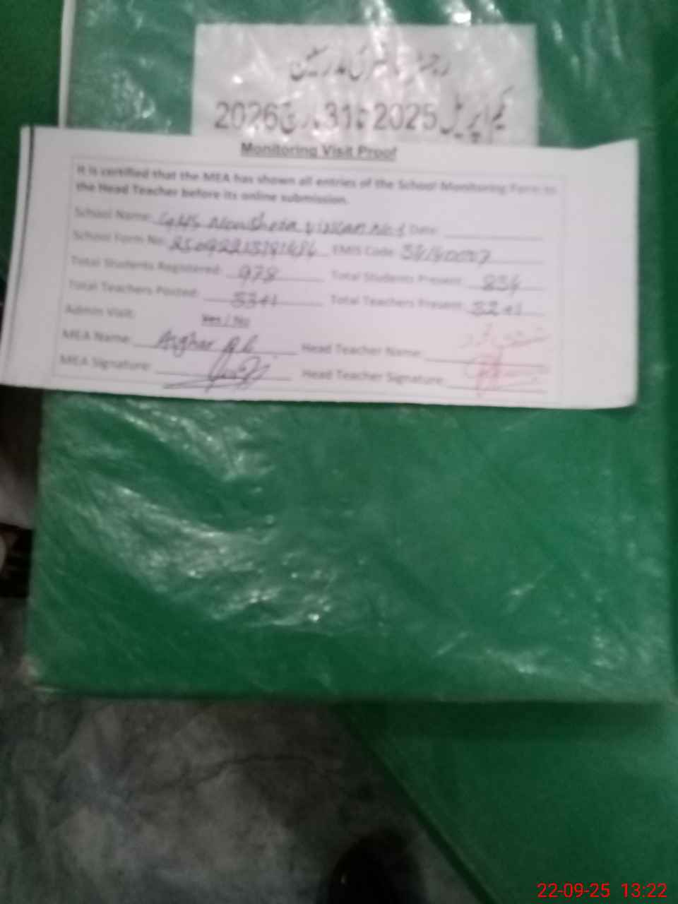 | Attendance Register | Head Teacher | MEA with School | Visit Proof |