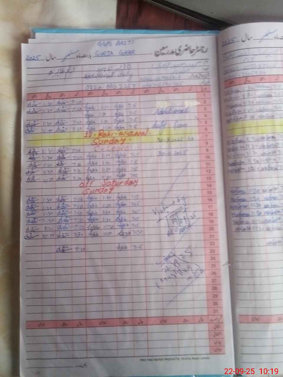 | CNIC | Full Name | Designation | R/C | Absence During Last Calender Month |