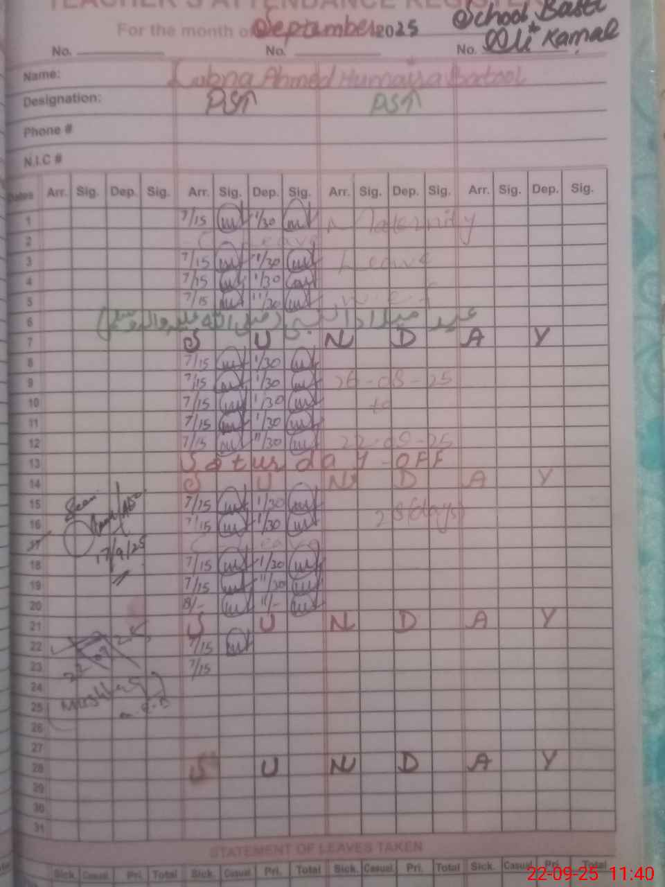 | Name: AB**** SH**** Designation: (School Headmaster's/Headmistress's) PST Phone/Cell Number: 03**** |