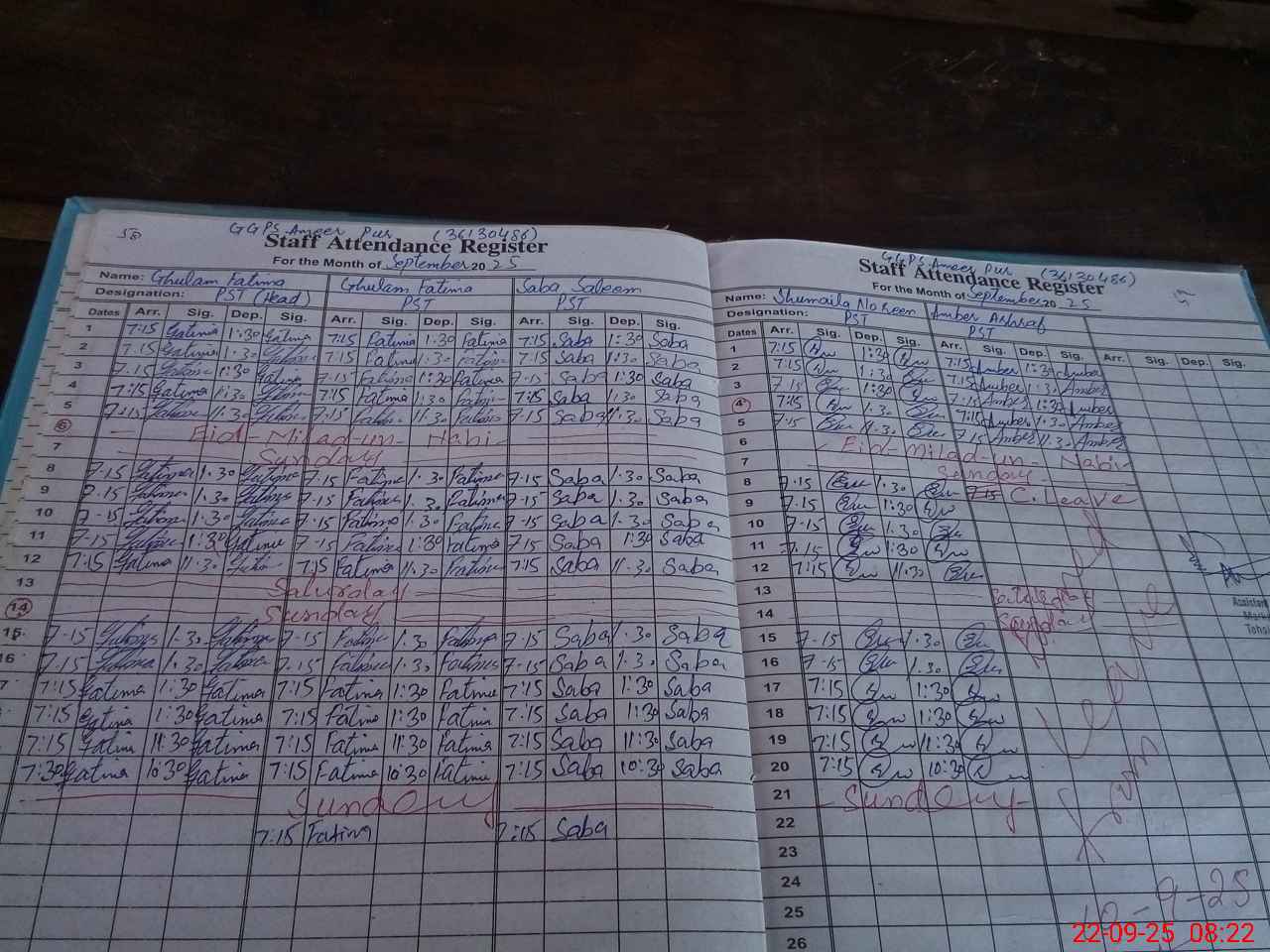 | Monitoring Date: 22-09-2025 | Start Time: 22-09-2025 08:09 AM | End Time: 22-09-2025 08:28 AM | Name of MEA: MU**** AK**** KH**** | |