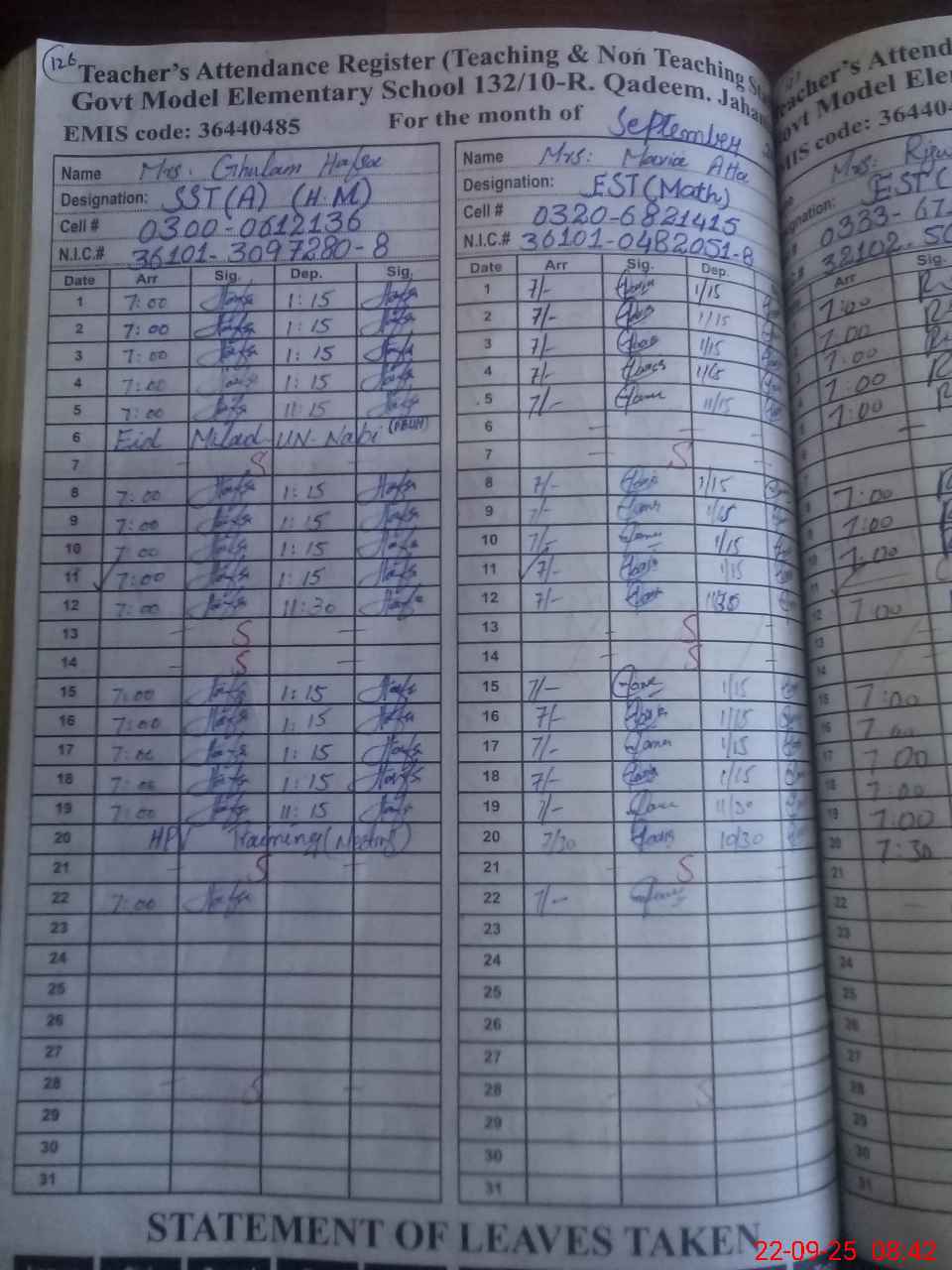 | Name: Gh**** Ha**** Designation: (School Headmaster's/Headmistress's) SST GENERAL Phone/Cell Number: 03**** |