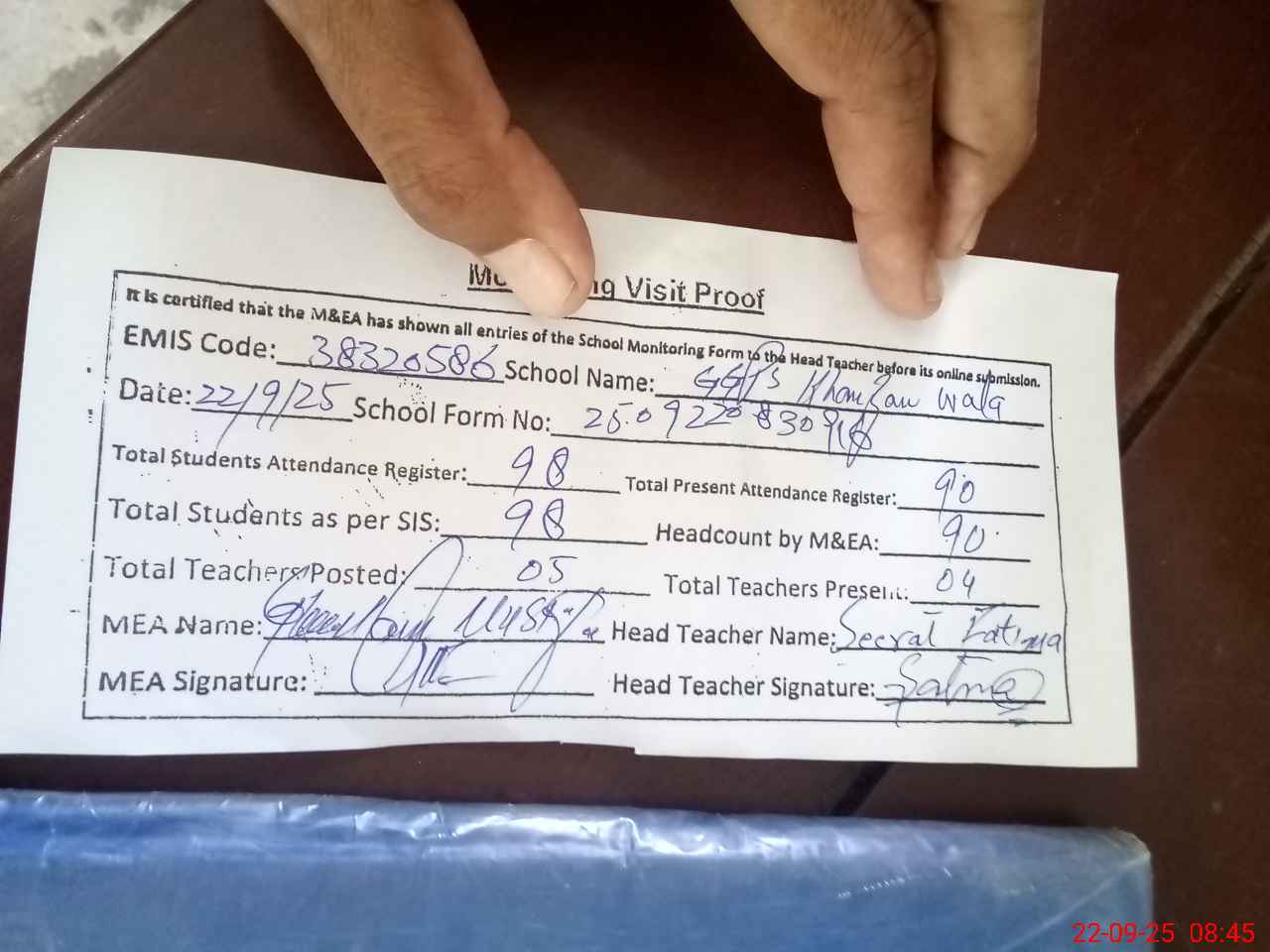 | EMIS Code: 38320586 | Name of School: GGPS KHAN ZAMAN WALA | |||