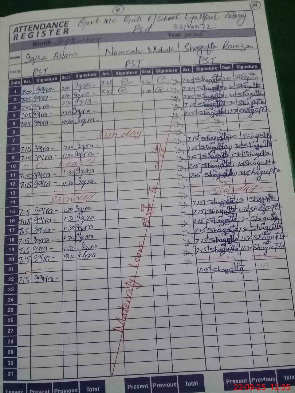 | 33**** | Na**** Me**** | PST | Regular | 0 | 0 | 0 | 0 | 0 | 0 | 0 | 0 | 0 | Maternity |