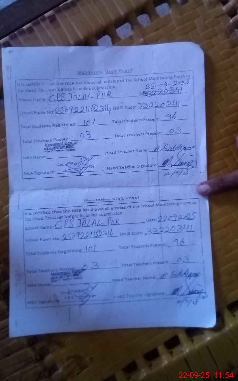 | EMIS Code: 33220341 | Name of School: GPS JALAL PUR | |||