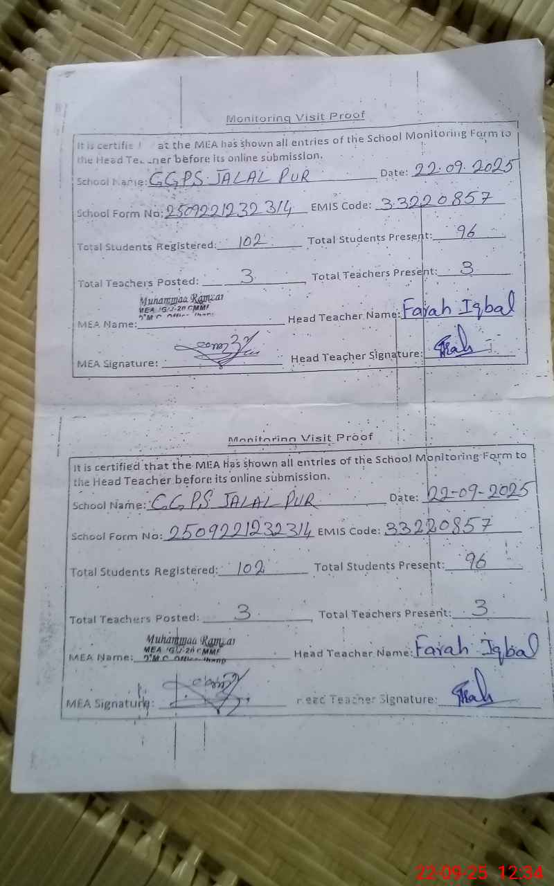 | EMIS Code: 33220857 | Name of School: GGPS JALAL PUR | |||