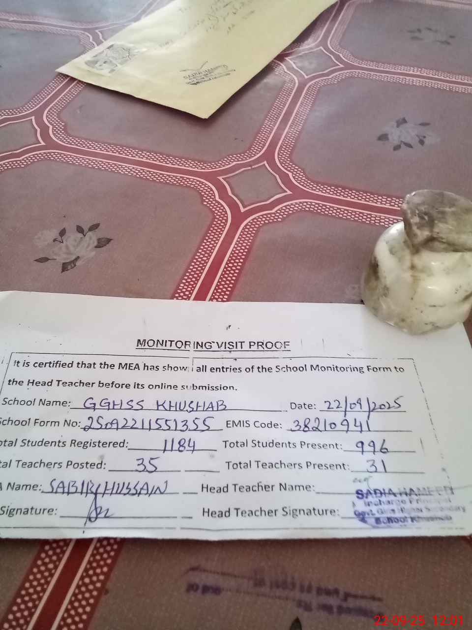 | EMIS Code: 38210941 | Name of School: GGHSS KHUSHAB GEROTE ROAD | |||