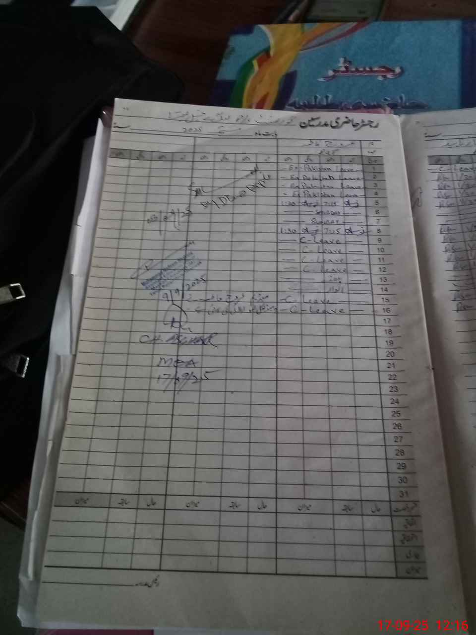 | CNIC | Full Name | Designation | R/C | Absence During Last Calender Month |