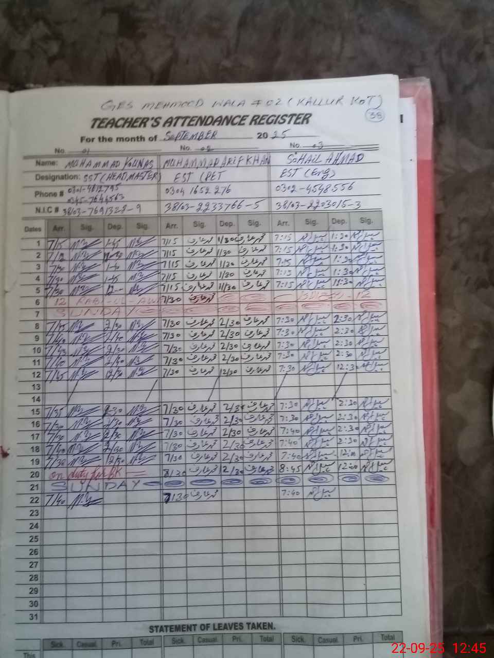 | Name: Mu**** Yo**** Designation: (School Headmaster's/Headmistress's) HEADMASTER Phone/Cell Number: 03**** |