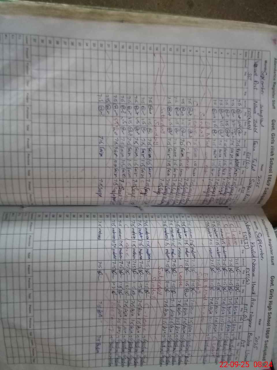 | No. of Students Present - Female | 15 | 0 | 25 | 16 | 19 | 25 | 17 | 28 | 20 | 33 | 21 | 33 | 20 | 272 | ||