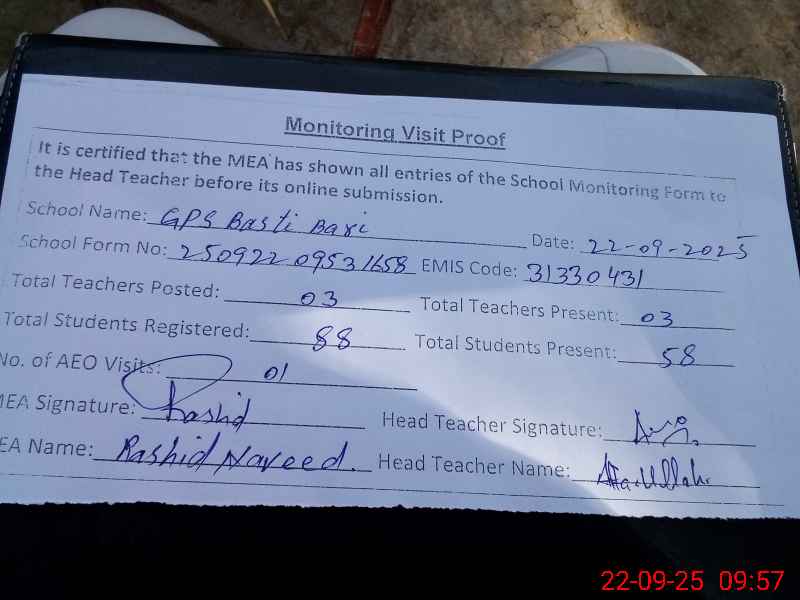 | EMIS Code: 31330431 | Name of School: GPS BASTI BARI | |||