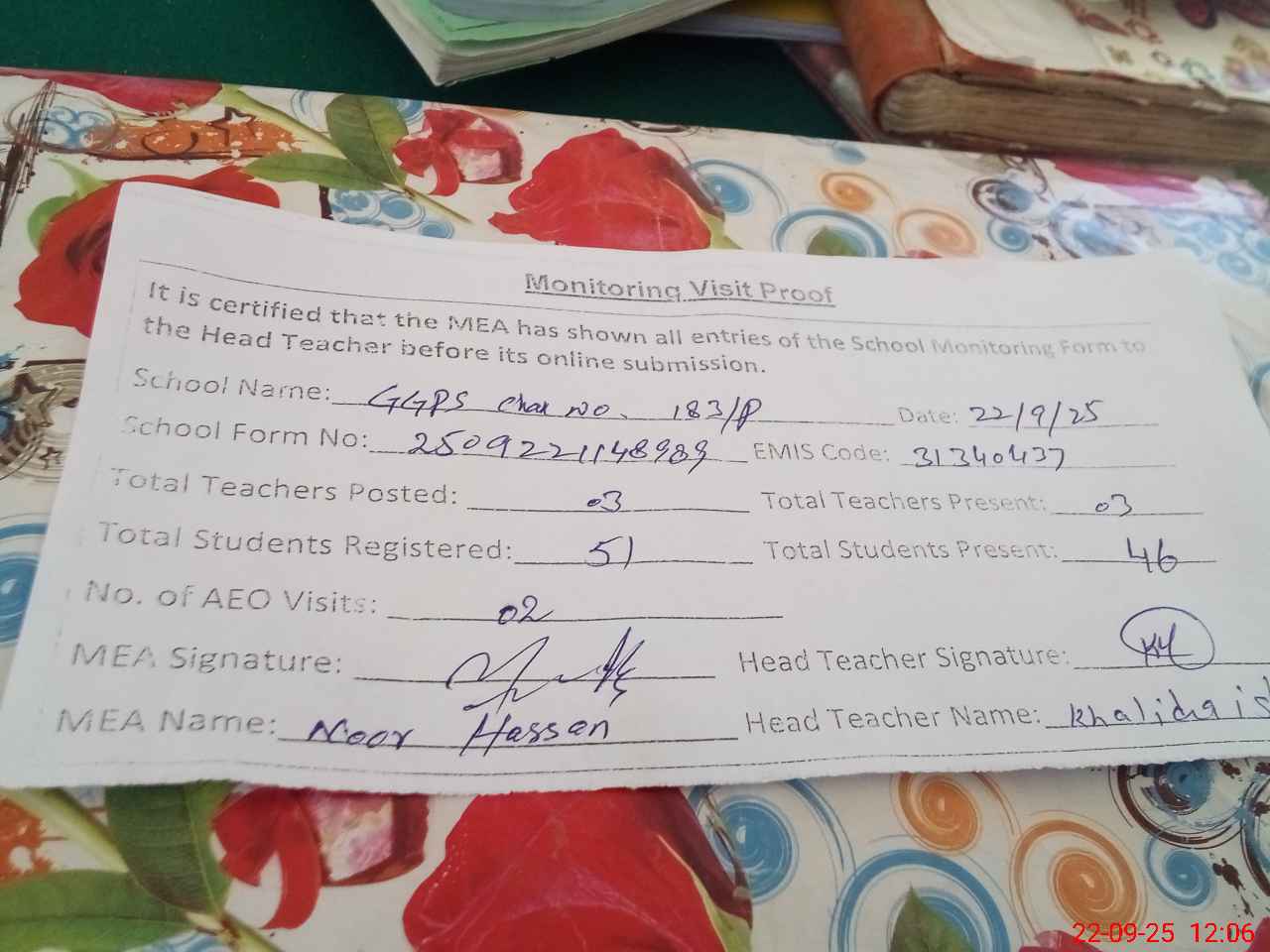 | EMIS Code: 31340437 | Name of School: GGPS 183/P | |||