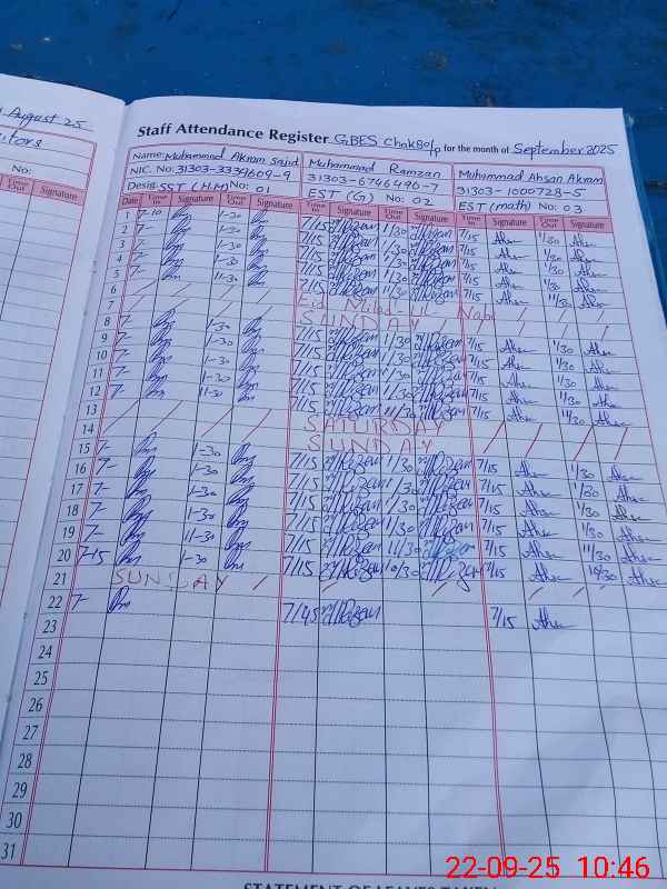 | Name: MU**** Ak**** Sa**** Designation: (School Headmaster's/Headmistress's) SST Phone/Cell Number: 03**** |