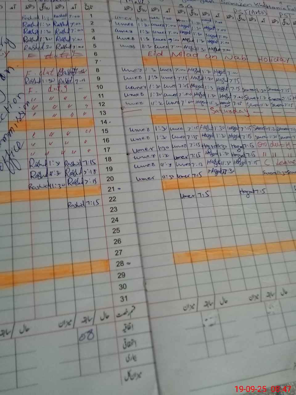| Leave | Duty | Absent | Maternity | Medical | Ex- Pak |