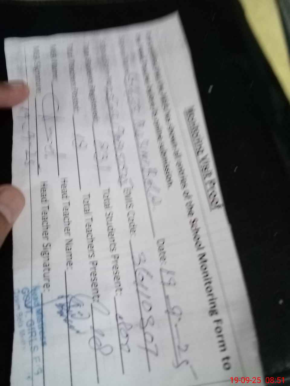 | Attendance Register | Head Teacher | MEA with School | Visit Proof |
